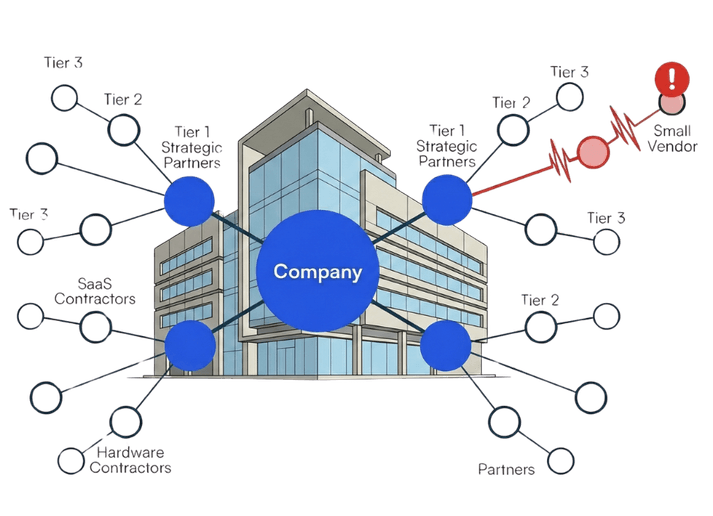 Every new vendor, partner, or cloud provider adds to the attack surface. Email threads and fragmented spreadsheets create gaps before anyone notices. VAMU automates third-party risk management so teams stay ahead of the ecosystem.